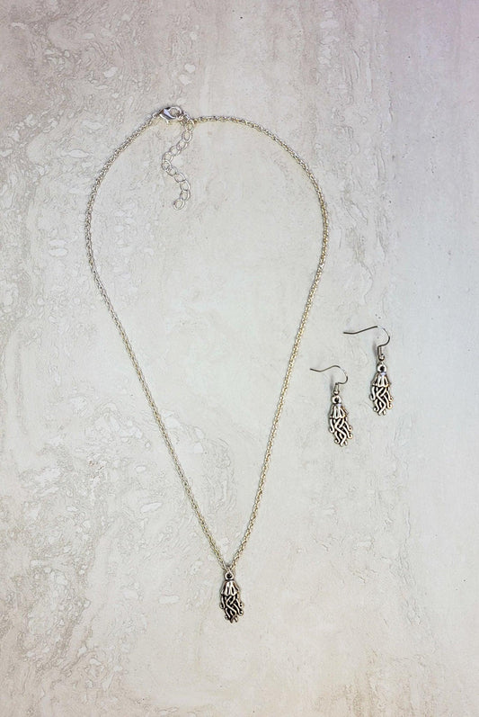Jelly Fish Jewelry Set - Silver - Matching Necklace & Earrings - One Of A Kind