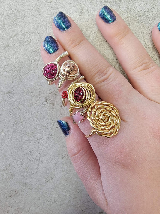 Silver & Pink Mini Nest Ring - Fuchsia Shamballa Bead