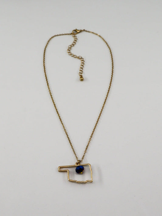 Gold Oklahoma Outline Necklace - Blue Crystal