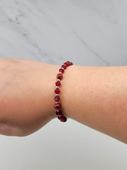 Silver & Red Tiny Sparkle Ring - Red Shamballa Bead