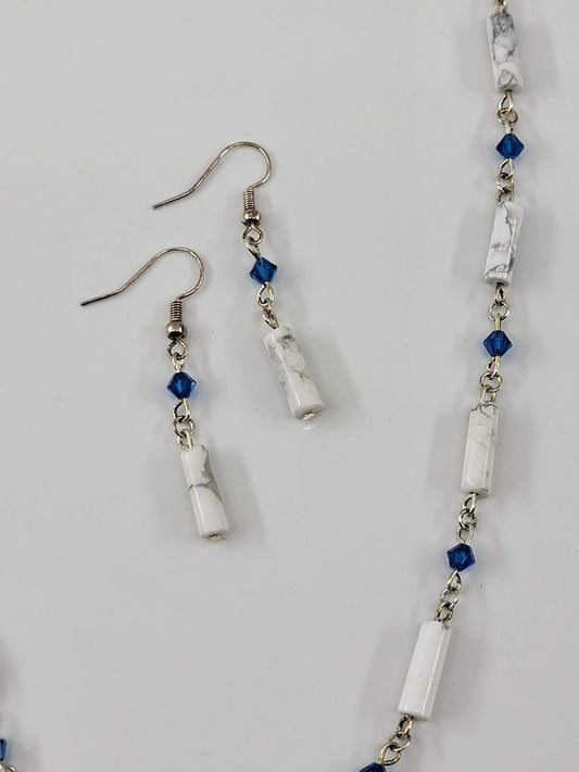 White Stone & Blue Crystal Jewelry Set - Matching Necklace & Earrings