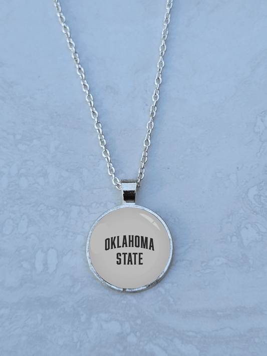 OSU, Gray, Silver 1" Round Necklace - Made to order - Custom Length