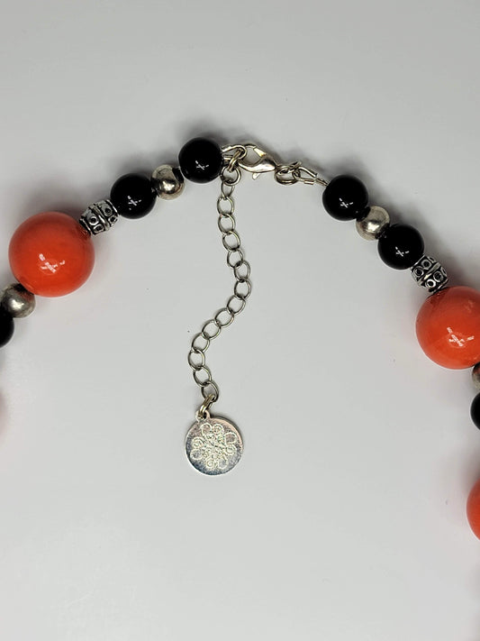 Orange Ceramic & Black Glass Bead Necklace - One of a kind