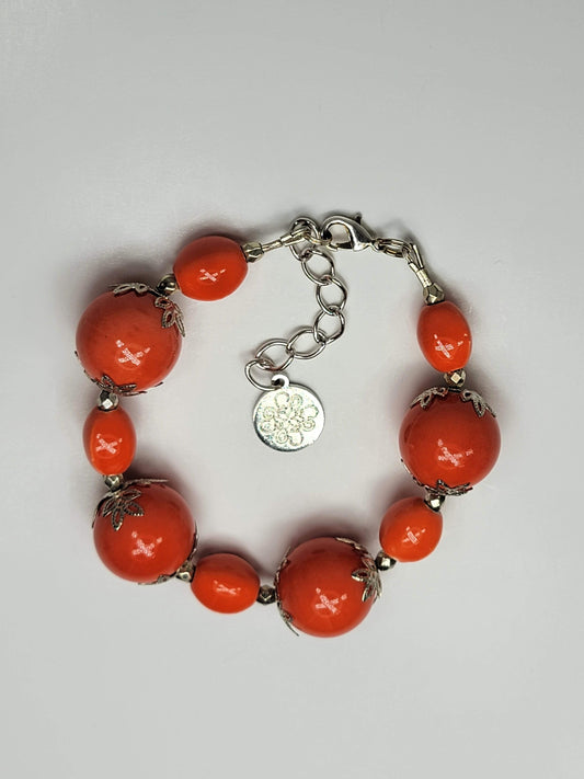 Orange & Silver Flower Bracelet - One of a kind