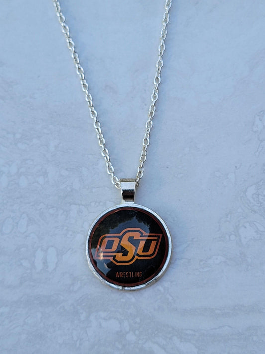 OSU Wrestling, Silver 1" Round Necklace - Made to order - Custom Length