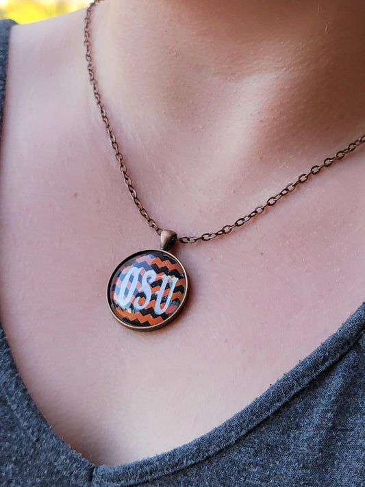 OSU, Chevron, Copper 1.25" Round Necklace - Made to order - Custom Length