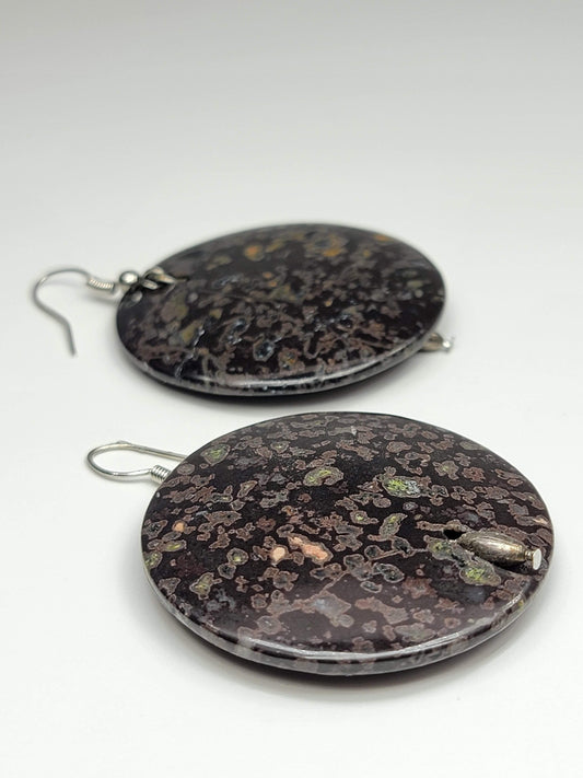 Black Agate Disc Earrings - One of a kind