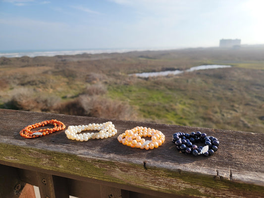 Black Sparkle & Orange Pearl Earrings