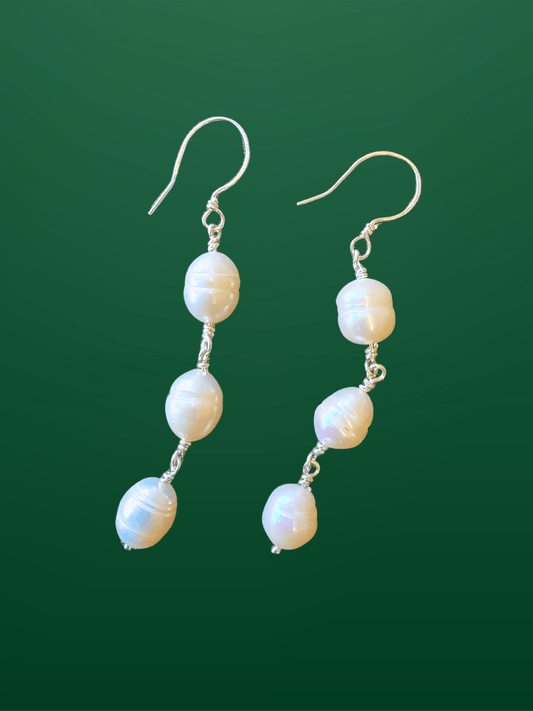 Three Stack White Pearl Earrings - .925 Sterling Silver - Handmade to order