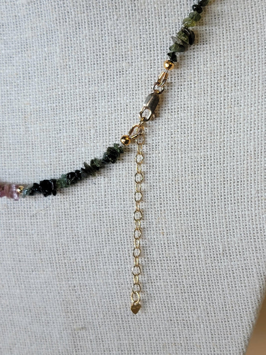Watermelon Tourmaline Chip Necklace - 14kt Gold-Filled or .925 Sterling Silver
