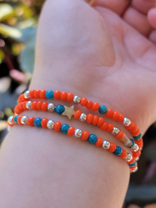 Orange & White Stone Jewelry Set - Matching Necklace, Bracelet & Earrings