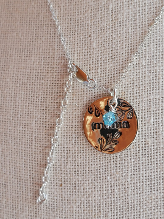 Mama Necklace - .925 Sterling Silver - Hand Stamped - Birthstone Charm