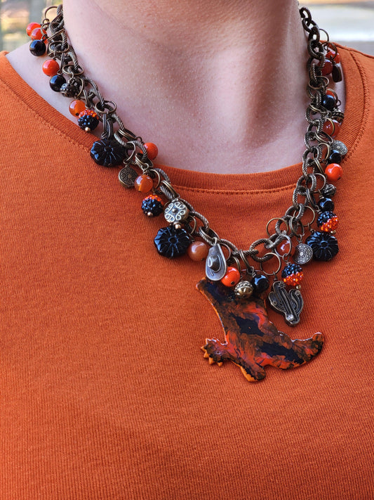 Fall Ok State Charm Necklace - One of a kind - Handpainted pendant