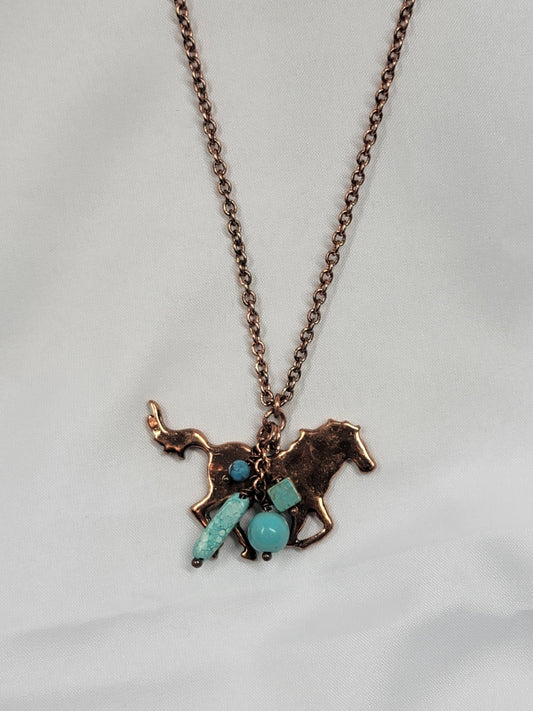 Copper Charm Necklace - Chicken, Goat or Horse - Turquoise or Orange