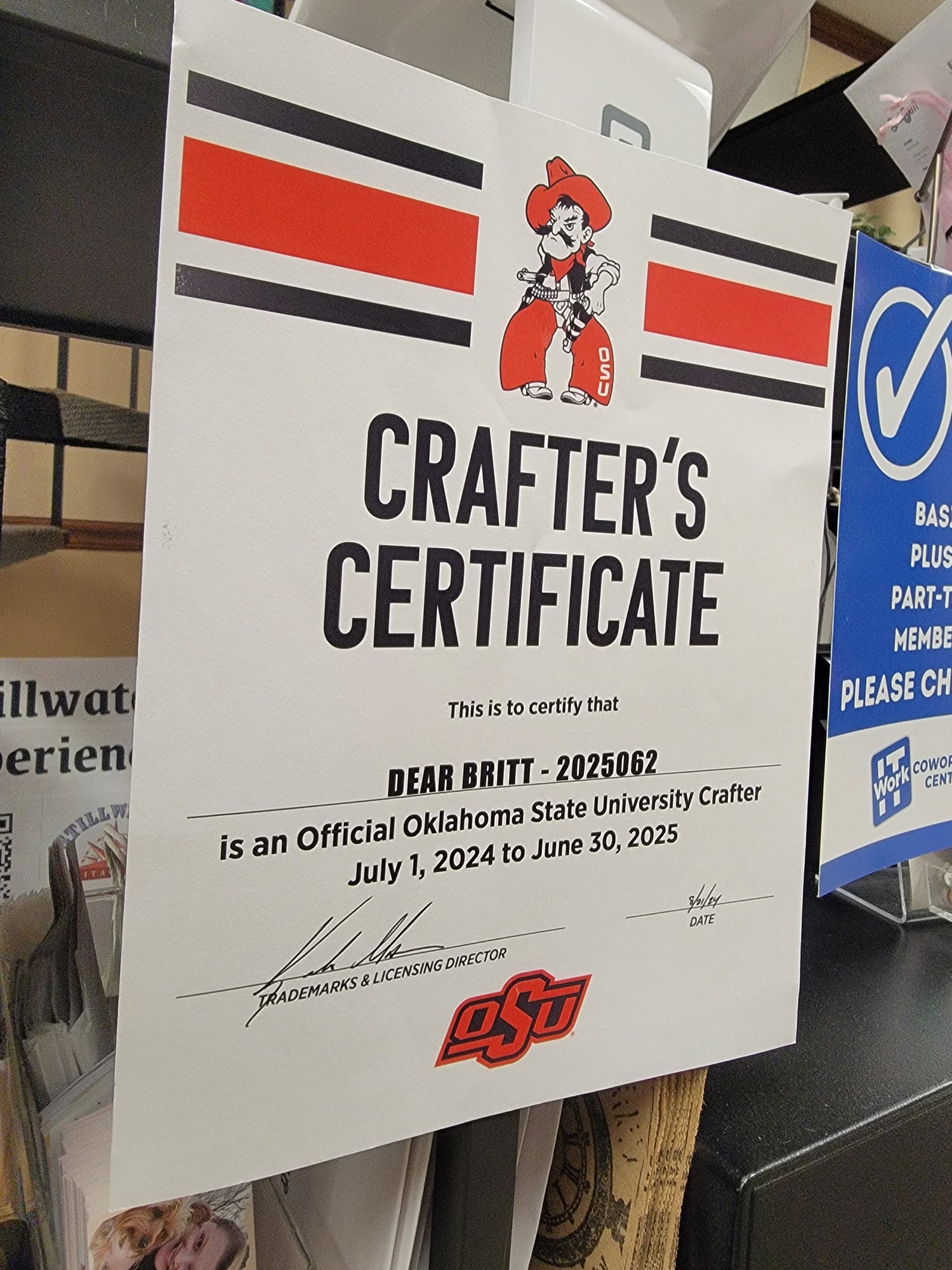 DearBritt Jewelry Designs is proud to be an offically certified oklahoma state university Crafter!