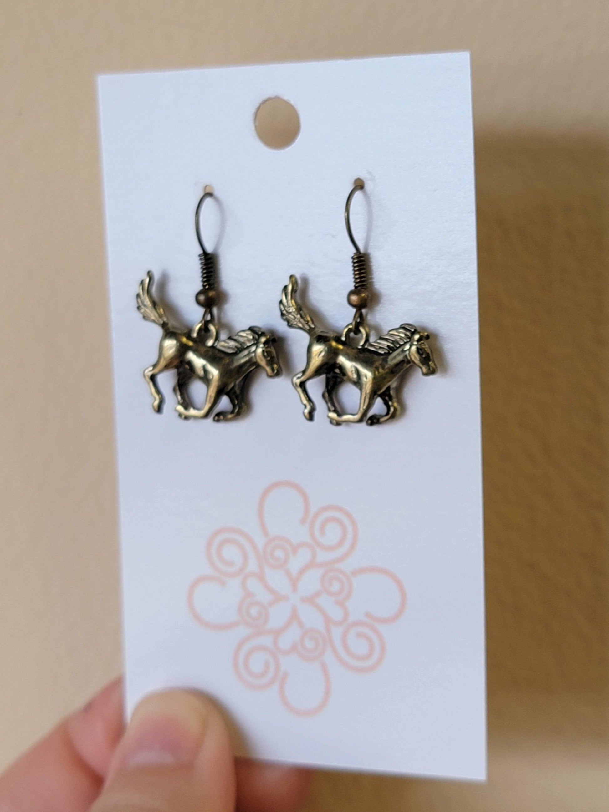 One of a kind antique brass horse charm earrings with matching earring hooks