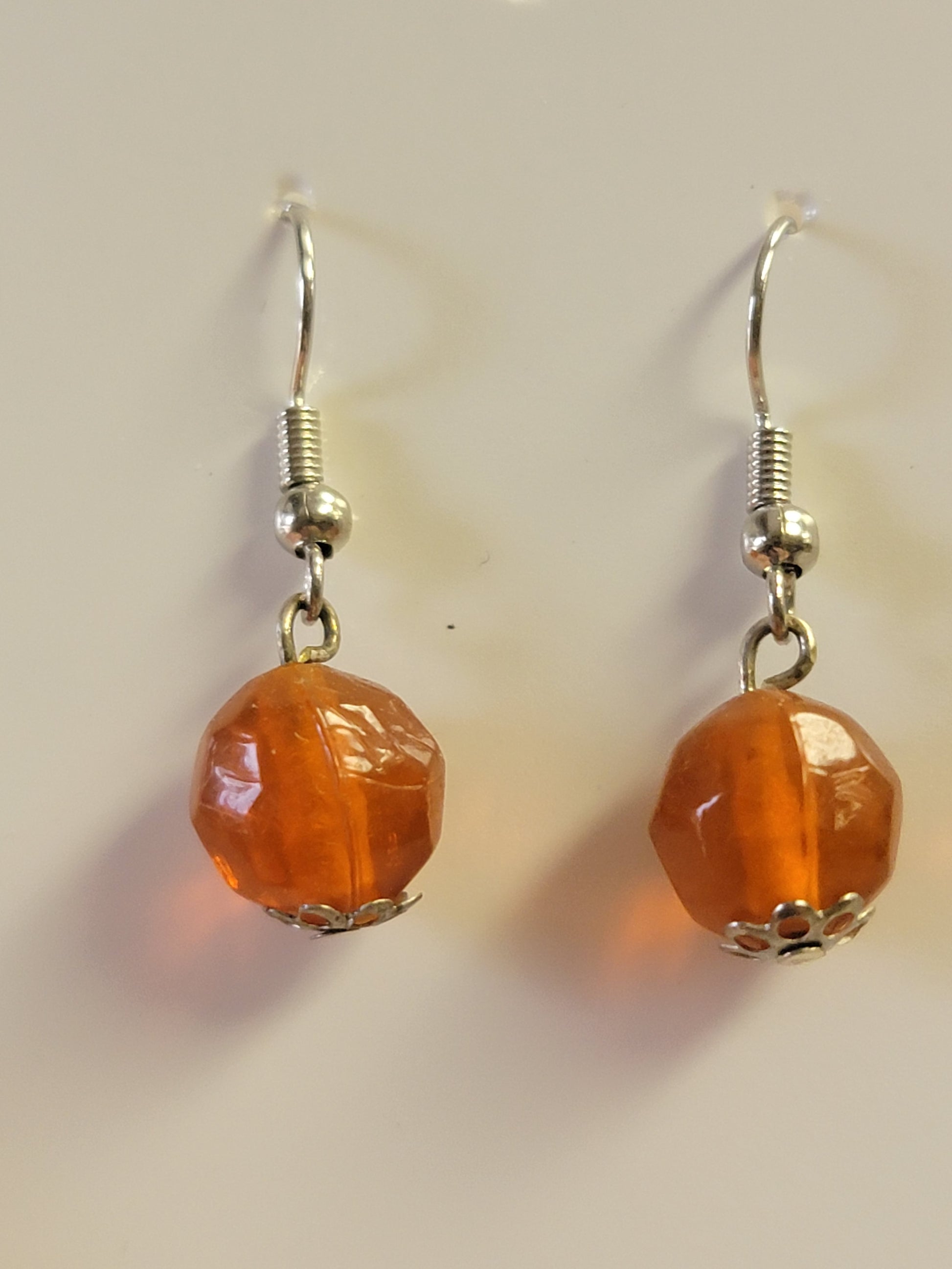 Orange glass bead earrings are made with hypoallergenic and nickel-free hooks.