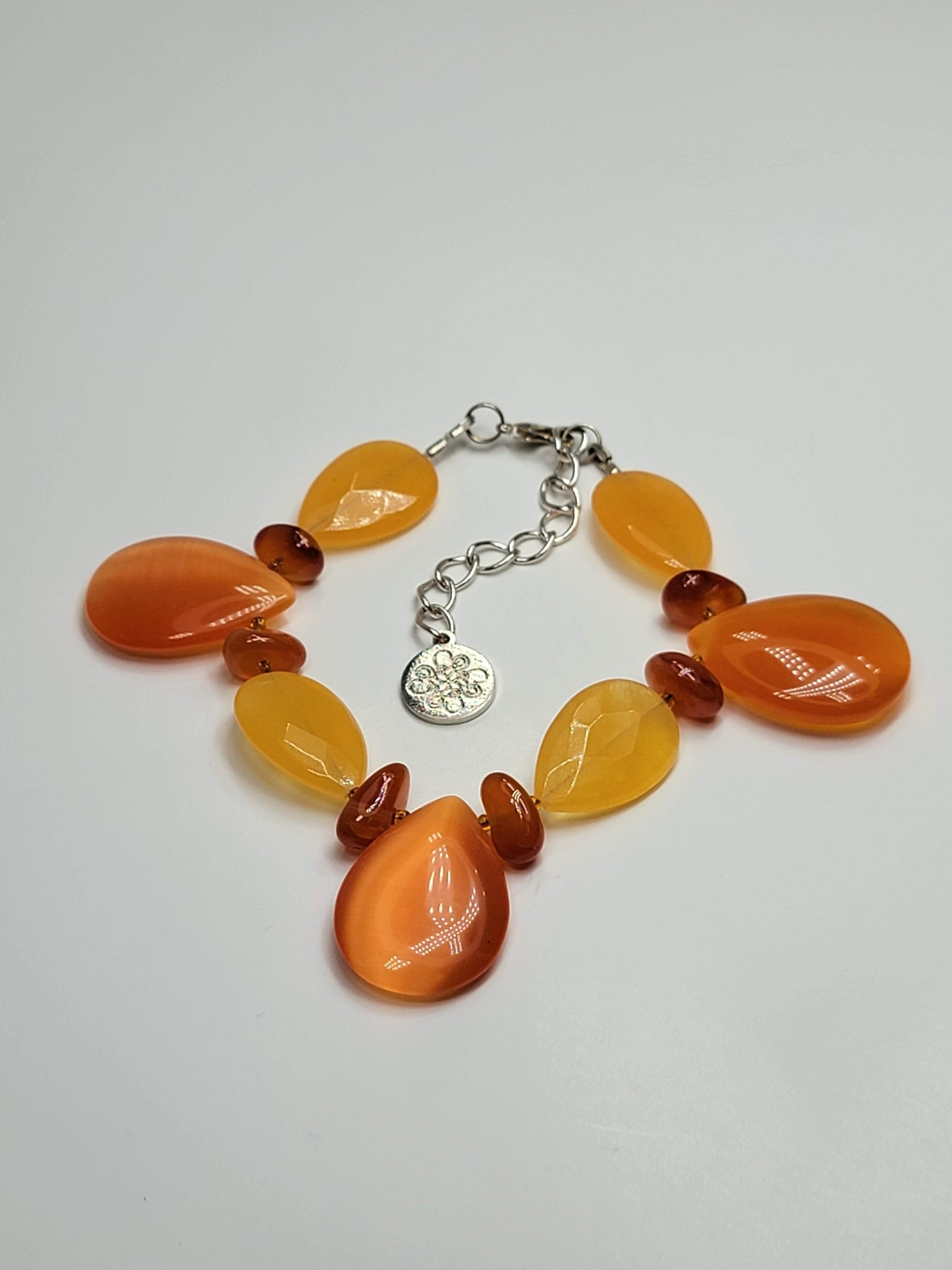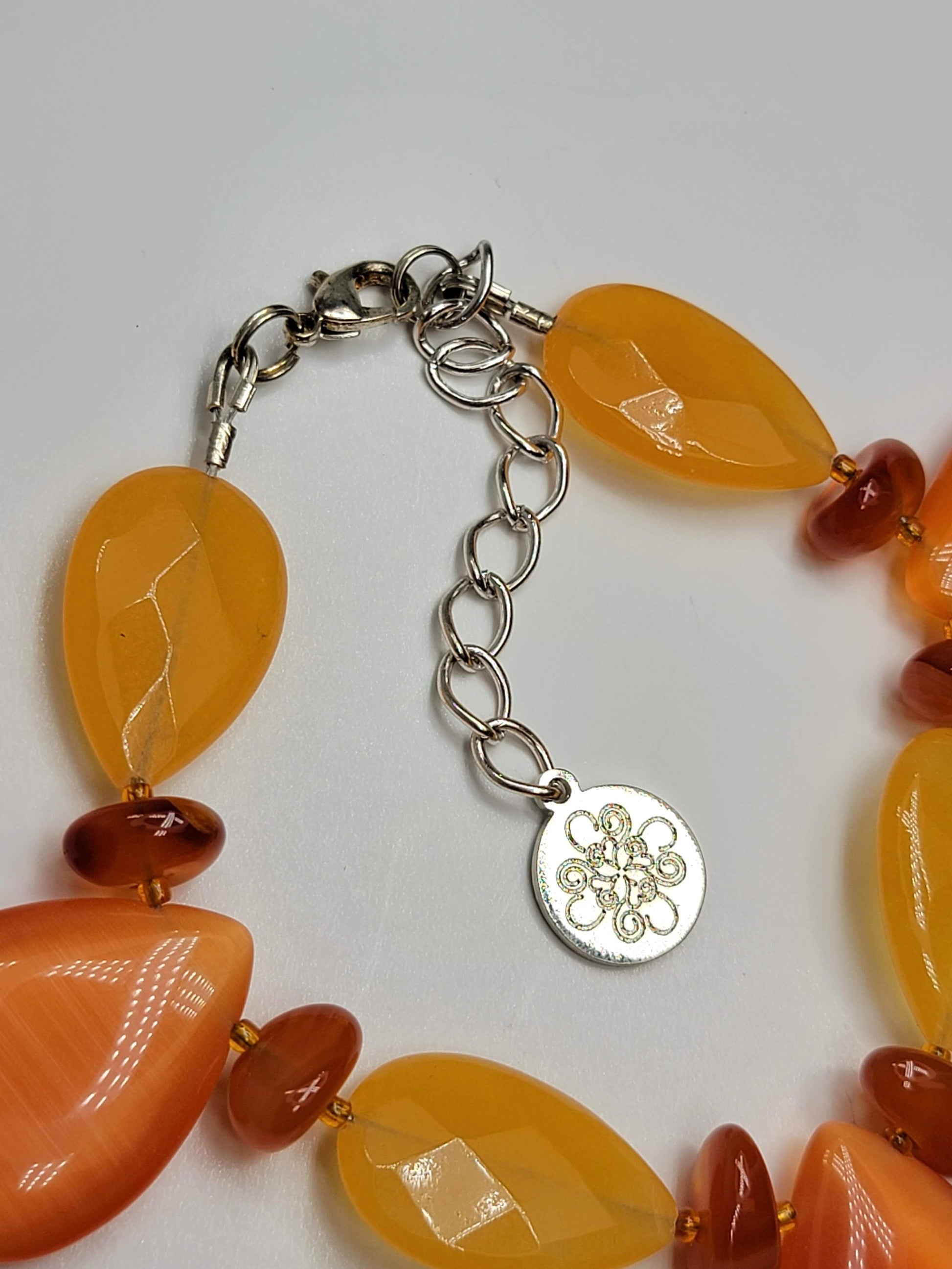 One-of-a-kind handmade bracelet with orange teardrop beads.
