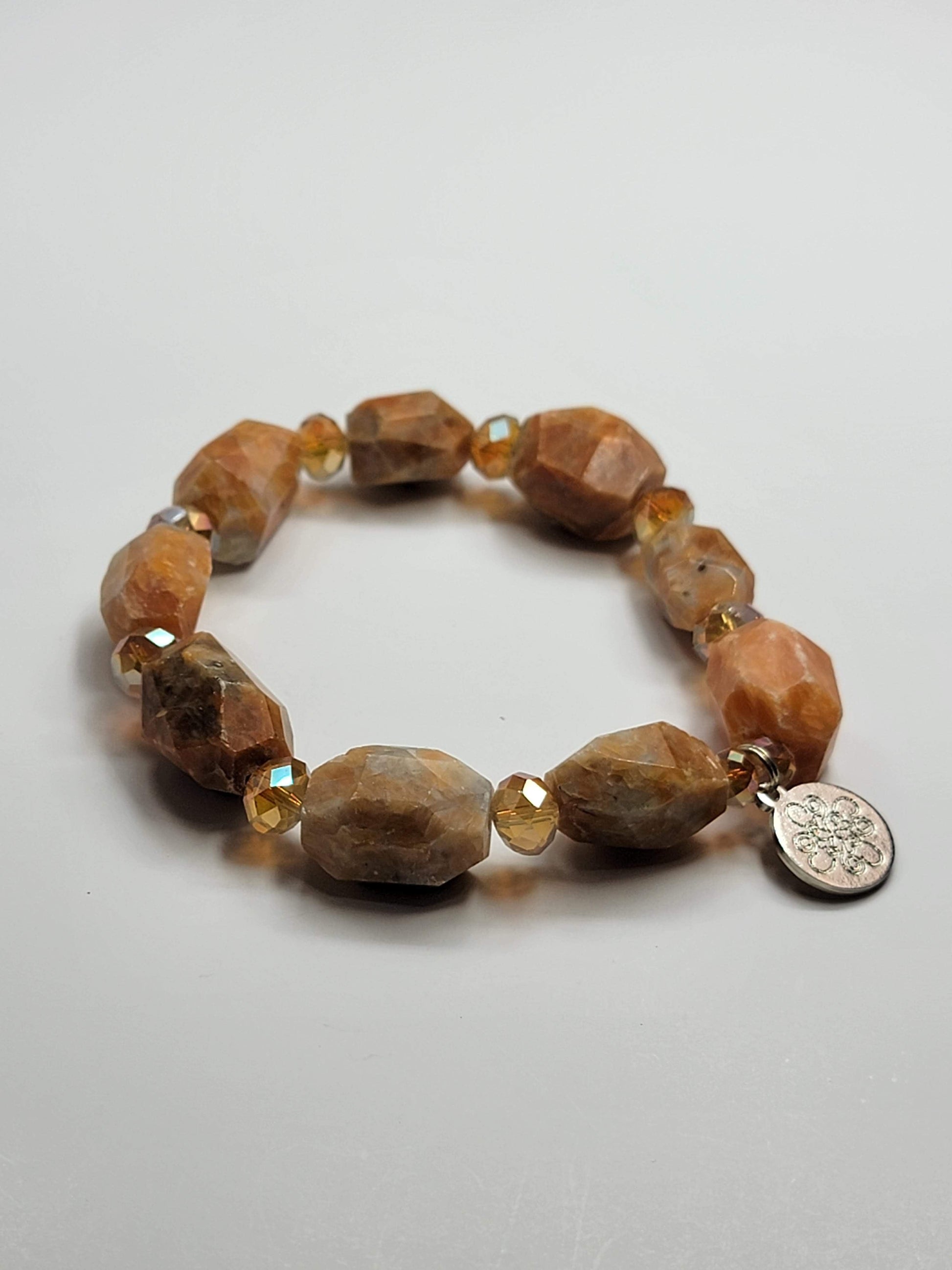 This one-of-a-kind bracelet is made with orange quarts stone statement beads and orange cream glass crystal beads.